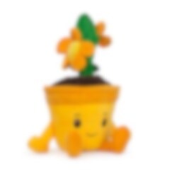 Dieses verspielte Kuscheltier zeigt einen orangefarbenen Blumentopf im Kawaii-Stil mit einem niedlichen Gesicht und einer kleinen Blume oben. Die warme Farbe und die weichen Formen machen die Figur sowohl süß als auch auffällig.