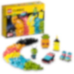 Das LEGO® Classic Neon Kreativ-Bauset (11027) fördert die kreative Entwicklung deines Kindes. Das spektakuläre Set beinhaltet Vorschläge für rasch zu bauende Modelle und lässt Kinder ab 5 Jahren, die sich für Kunst und Design begeistern, auch unzählige eigene Ideen verwirklichen. Leuchtende Steine für kreative Kinder Dieses vielseitige Bauset beinhaltet 333 Steine in unterschiedlichen Größen und lebhaften Neonfarben. 18 Steine mit ausdrucksstarken Augen erwecken die eigenen Kreationen zum Leben. Gedruckte Bauanleitungen für 5 Modelle – Ananas, Textmarker, Auto, Alien und Rollschuhe – geben deinem Kind das nötige Selbstvertrauen, um alles zu bauen, was ihm in den Sinn kommt! Und in der LEGO Builder App sind auch digitale Versionen der Bauanleitungen zu diesem Set verfügbar. Tolles Set für die ganze Familie LEGO Classic 5+ Spielzeuge liefern Kindern viele Bau- und Spielideen und bieten Eltern die Möglichkeit, mitzubauen und wichtige Entwicklungsschritte ihrer Kinder hautnah mitzuerleben.