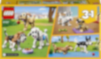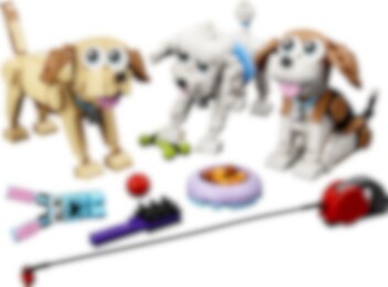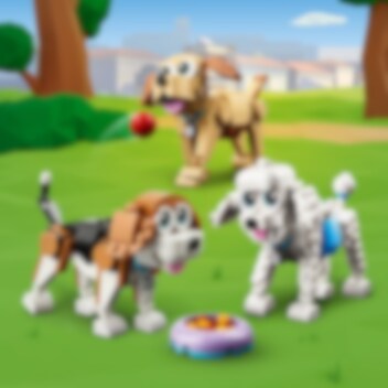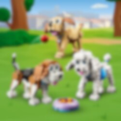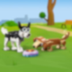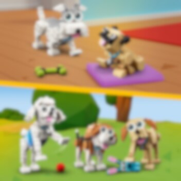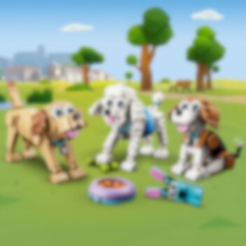 Das ultimative Bauset für Hundeliebhaber! Baue einen Beagle, einen Pudel und einen Labrador für aufregende Ausflüge in den Park – mit Ball und Leine. Baue die drei Figuren dann in einen Zwergschnauzer und einen Mops oder in einen Husky und einen Langhaardackel um. Dieses bezaubernde 3-in-1-Set lässt dir die Wahl.