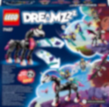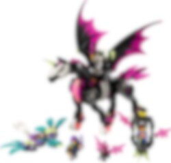 Schick Kinder ab 8 Jahren auf dem LEGO® DREAMZzz Pegasus (71457) auf faszinierende Actionabenteuer in der Traumwelt. Das Bau- und Spielset basiert auf der TV-Serie DREAMZzz. Nova wurde von dem Albgnom Susan entführt. Doch Zoey ist den beiden schon auf ihrem Pegasus auf den Fersen, um ihre Freundin Nova zu retten! Die Bauanleitung in Form einer Bildergeschichte lässt dein Kinder in diese faszinierende Spielwelt eintauchen und fantasievoll spielen. Welchen Weg Zoey einschlägt, entscheidet dein Kind ganz allein. 1 Bauset, 2 Baumöglichkeiten Um Zoey bei Novas Rettung zu helfen, kann dein Kind eine Vogelfigur bauen, die Zoey begleitet. Oder man kann Zoey mit Flügeln versehen, damit sie die Albträume verfolgen kann. Die beiden Baumöglichkeiten lassen dein Kind nicht nur besonders fantasievoll und kreativ bauen, sondern bieten auch den doppelten Spielspaß. Magisches Fabelwesen, fantastische Details Der Spielzeug-Pegasus kann seinen Kopf, seine Hüfte, seine Hufe und seinen Schwanz bewegen, damit dein Kind ihn beim Spielen in unterschiedliche Posen bringen kann. Man kann sowohl den detailreichen Thron des Albtraumkönigs als auch Zoeys Vogel auf dem Rücken des Fabelwesens befestigen.