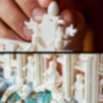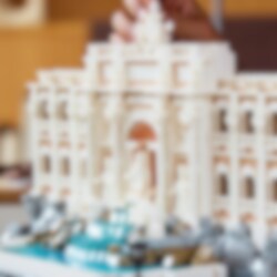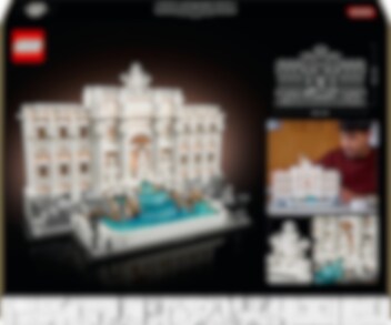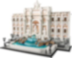 Faszinierendes Modell des Trevi-Brunnens aus Rom Erschaffe das Modell mithilfe der Elemente in warmen Weiß-, Hellbraun- und Rosatönen und erfreue dich an den Details. Der Farbverlauf der Blautöne stellt die Wassertiefe dar. Baue die imposante Fassade des Palazzo Poli samt päpstlichem Wappen. Füge die in Gestalt von Minifiguren nachgebildeten Skulpturen hinzu und erfreue dich an der vollen Pracht dieses legendären Wahrzeichens.