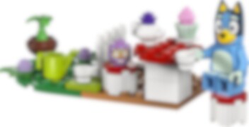 Begleiten Sie Bluey und Quatschimax zu einer gemütlichen Teeparty auf der Veranda! Blueys Teeparty (30687) enthält Figuren von Bluey und Quatschimax, eine Teekanne, Tassen, einen Cupcake und einen Stuhl in Form eines roten Pilzes. Ein niedliches kleines Set für Fans der beliebten TV-Serie Bluey, ab 4 Jahren.