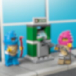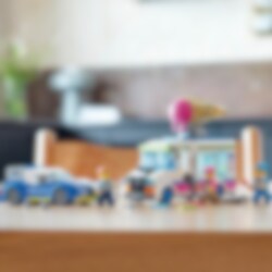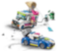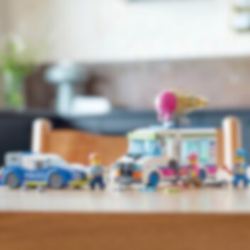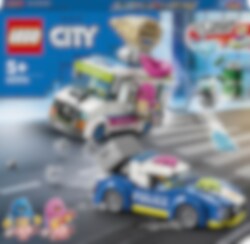 Schepper! Ganove Eis und Ganove Creme haben einen Geldautomaten aus seinem Fundament gerissen und machen sich jetzt mit ihrem umgebauten Eiswagen aus dem Staub! Schick den LEGO® City Polizisten in seinem megastarken Flitzer hinterher! Weiche den Eisplatschern aus der Eiskanone aus. Benutze die Reifenkiller, um die eiskalten Ganoven aufzuhalten! Freu dich auf coolen Actionspaß in LEGO City!