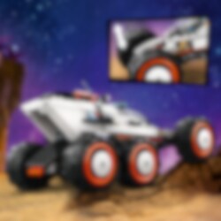 Erkunde neue Welten an Bord des futuristischen Weltraum-Rovers. Diese gigantische Maschine der Weltraumcrew wird von stromerzeugenden Energiekristallen angetrieben und ist für Fahrten in felsigem Gelände mit riesigen Reifen und einer hochmodernen Federung ausgestattet. Begleite die Crew auf Fahrten zur Kartierung der Planetenoberfläche, entdecke seltsam dampfende Geysire und begegne vielleicht sogar freundlichen Aliens. Gut festhalten!