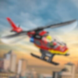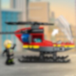 Freu dich auf spannende Löscheinsätze mit dem LEGO® City Feuerwehrhubschrauber! Schnapp dir deinen Feuerwehrhelm und nimm das Luftbeobachtungsfernglas aus dem Staufach, steig ins Cockpit und wirf die Rotoren an. Flieg in Rekordzeit zum Brandort und aktiviere die starken Löschkanonen, um die Flammen im Nu zu ersticken! In LEGO City erwarten dich viele aufregende Löscheinsätze!
