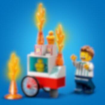 Die LEGO® City Feuerwehrleute machen gerade ein wohlverdientes Nickerchen in der Feuerwehrstation, als plötzlich der Alarm ertönt. Oh je, der Wagen eines Popcornverkäufers steht in Flammen! Schau auf den Bildschirm, um den Brandort zu finden. Schnapp dir deinen Feuerwehrhelm und sause die Rutsche zum Löschauto hinunter... JUHU! Steig ins Löschauto und fahr los, um die Lage und vor allem das Popcorn zu retten!