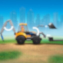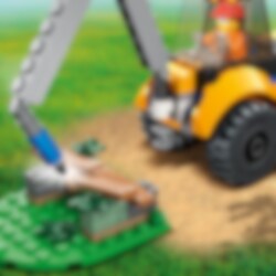 Steig in den anpassbaren Radlader! Hilf den Arbeitern in LEGO® City, die alte Parkbank durch eine futuristische „Smartbench“ mit Smartphone-Ladestation auszutauschen. Benutze den Presslufthammer und die Schaufel des Radladers, um die Spuren der alten Bank zu beseitigen. Montiere dann die Palettengabel, um die neue Bank an der richtigen Stelle abzusetzen. Lade nach getaner Arbeit deinen Besen und deine Ausrüstung auf und fahr zum nächsten Einsatzort!