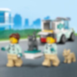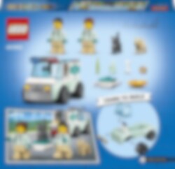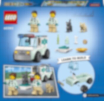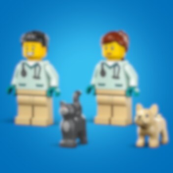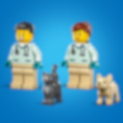 Begleite die Tierärzte auf Tierrettungsmissionen. Lade deine Ausrüstung ein und fahr mit dem coolen Rettungswagen los. Füttere die hungrige Katze mit der Nuckelflasche. Gib dem Hund einen saftigen Knochen. Leg die kränkelnden Tiere auf die Trage, um sie mitzunehmen, und benutze die Spritze, um ihnen wichtige Medizin zu verabreichen. Freu dich auf spannende Tierrettungen mit den LEGO® City Sets!