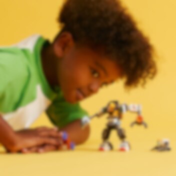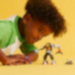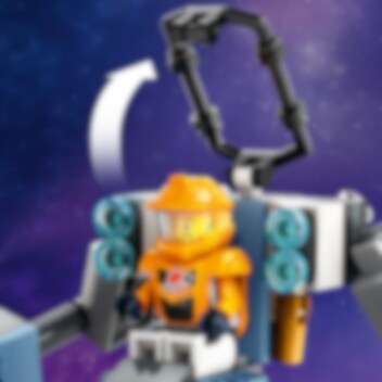 Steig ins Cockpit des robusten Weltraum-Mechs und freu dich auf eine Bergbau-Expedition auf einem fernen Planeten. Dieser coole Mech eignet sich perfekt für die Erkundung neuer Welten, denn er hat große biegsame Gelenke, eine kräftige Greifklaue und große Füße für Spaziergänge auf anderen Planeten. Lass deinen Bauroboter bohren und Proben nehmen und benutze die Arme mit dem Hammer und der Klaue, um Felsen aufzubrechen und stromerzeugende Energiekristalle auszugraben. Packen wir’s an!