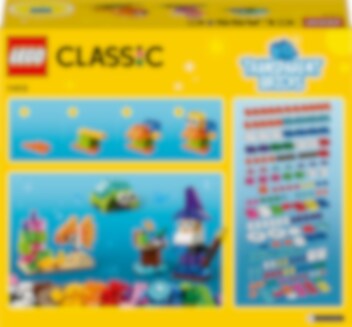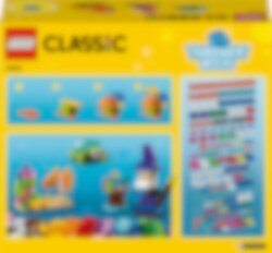 Das LEGO® Classic Kreativ-Bauset mit durchsichtigen Steinen enthält eine farbenfrohe Auswahl an transparenten LEGO Teilen, um die LEGO Modelle der Kinder funkeln zu lassen. 8 Bauideen stehen den Kinder zur Wahl, zum Beispiel ein Zauberer mit seinen Zaubertrankflaschen oder ein glänzender Roboter, der Tee serviert. Mit den zusätzlichen Steinen in der Box können Kinder alles bauen, was ihnen in den Sinn kommt, und beim Bauen und Spielen wichtige Fähigkeiten fürs ganze Leben entwickeln.