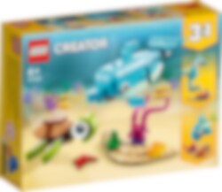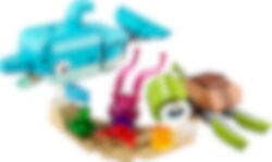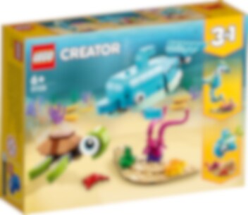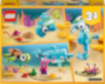 Das 3-in-1-Bauset „Delfin und Schildkröte“ (31128) lässt LEGO® Fans ab 6 Jahren spannende Abenteuer am Meeresgrund darstellen. Der Baby-Delfin kann seinen Körper, sein Maul und seine Flossen bewegen, und die Baby-Schildkröte hat einen beweglichen Kopf und bewegliche Flossen. Beide Figuren lassen sich auf dem Ständer ausstellen. Spielzeug-Meeresbewohner für fantasievolle Abenteuer Dieses LEGO Creator 3-in-1-Set für Kinder beinhaltet 3 Spielzeug-Meeresbewohner zum Zusammenbauen. Dein Kind kann einen Delfin und eine Schildkröte mit beweglichen Gliedmaßen erschaffen und dann in ein Seepferdchen mit Meeresschnecke oder in einen hübschen Fisch umbauen, der von einer Krabbe begleitet wird. Man kann sich aber auch ein völlig neues Tier einfallen lassen. LEGO Bausets für kreative Spielerlebnisse LEGO Creator 3-in-1-Sets bieten Kindern stundenlangen Spielspaß mit den jeweils enthaltenen 3 Modellen zum Zusammenbauen! Dieses Spielvergnügen nimmt so schnell kein Ende, denn die detailgetreuen Modelle lassen sich zerlegen und in fantasievolle eigene Modelle verwandeln! Dein Kind kann eines von vielen 3-in-1-Sets auswählen und zum Beispiel Tiger, Autos und Düsenflieger bauen.