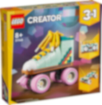 Kreative Kinder ab 8 Jahren können mit dem farbenfrohen LEGO® Creator Retro Roller Skate (31148) Bauset in die Vergangenheit reisen. Das Set enthält einen LEGO Spielzeug-Rollschuh mit 4 rosa beweglichen Rädern, rosa Bremse, dicken gelben Schnürsenkeln und einem Satz farbenfroher Teile, mit denen Kinder die Ferse des Schuhs in ihrem eigenen Design dekorieren können. Dieses LEGO Creator 3-in-1-Set bietet Kindern drei verschiedene Bau- und Spielerlebnisse mit denselben Steinen. Sie können einen Spielzeug-Rollschuh bauen und ihn in ein farbenfrohes Mini-Skateboard im Retro-Stil mit 4 beweglichen Rädern oder einen Retro-Mountain-Blaster mit einer kleinen Antenne umbauen. Alle 3 Modelle werden zu auffälligen Ausstellungsstücken, wenn die Spielabenteuer der Kinder für einen Tag vorbei sind. LEGO Creator 3-in-1-Spielzeuge eignen sich perfekt als Geschenk für Kinder, denn jede Packung enthält 3 verschiedene Modelle zum Gestalten. Kinder werden es lieben, zu bauen, umzubauen und wieder zu bauen. 3-in-1-Sets werden sie stundenlang unterhalten und bieten eine Vielzahl von Modellen, die ihre größten Interessen befriedigen, wie zum Beispiel superschnelle Fahrzeuge, fantastische Tiere und detaillierte städtische Umgebungen.