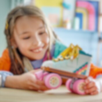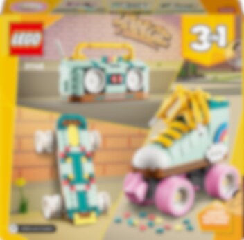 Lassen Sie die Zeit zurückdrehen mit einem lustigen und farbenfrohen LEGO® Creator Retro-Rollschuh. Nachdem Sie eine Weile auf der Eisbahn herumgefahren sind, können Sie einen Stopp einlegen und es in eine weitere Ikone der Popkultur umbauen – ein Retro-Skateboard mit beweglichen Rädern. Gehen Sie für mehr Spannung in den Skatepark oder verwandeln Sie ihn in einen supercoolen Retro-Mountain-Blaster. Mit diesem stilvollen und einzigartigen 3-in-1-Baukasten haben Sie die Wahl.