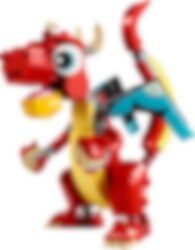 Machen Sie sich bereit für eine Reise in ein magisches und geheimnisvolles Land, wo Sie Abenteuer mit drei farbenfrohen Tieren erleben können. Bauen und präsentieren Sie einen fantastischen LEGO® Creator Roten Drachen mit Flügeln und Hörnern. Machen Sie das Spiel noch unterhaltsamer, indem Sie das Modell in einen niedlichen Phönixvogel mit glitzernden Federn oder einen niedlichen Fisch umbauen, der auf dem Meeresgrund schwimmt. Mit diesem erstaunlichen 3-in-1-Set liegt alles bei Ihnen.