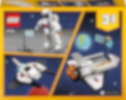 Freu dich auf intergalaktische Abenteuer mit 3 verschiedenen LEGO® Raumfahrtspielzeugen in 1 Spielset. Starte mit dem Spaceshuttle und seinem ausfahrbaren Satelliten in die Erdumlaufbahn. Baue das Modell anschließend in einen Astronauten mit beweglichen Armen und Beinen um. Oder verwandle es in ein supercooles Raumschiff mit Schwenkflügeln. Dieses fantastische 3-in-1-Set bietet unzählige Spielmöglichkeiten im Weltall.
