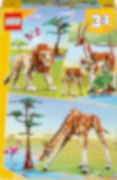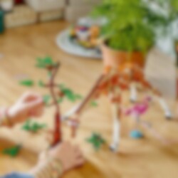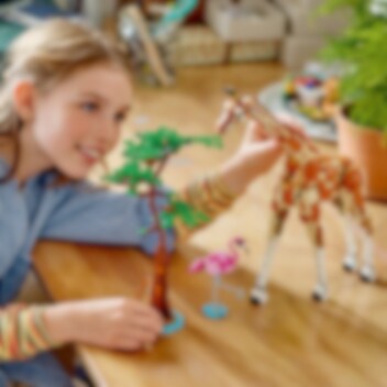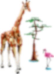 Mit diesem Set können Sie so tun, als würden Sie auf Safari gehen, um majestätische Wildtiere in ihrem natürlichen Lebensraum zu beobachten. Beobachten Sie, wie eine elegante Giraffe ihren langen Hals beugt, um einen Flamingo zu begrüßen. Für noch mehr sonnenverwöhnte Abenteuer können Sie ihn in eine Gazelle umbauen, die ihrem Jungen das Laufen beibringt, oder in einen freundlichen Löwen, der im Schatten unter einem Baum mit einem Schmetterling ruht. Was wirst du bauen? Mit diesem fantastischen 3-in-1-Set haben Sie die Wahl.