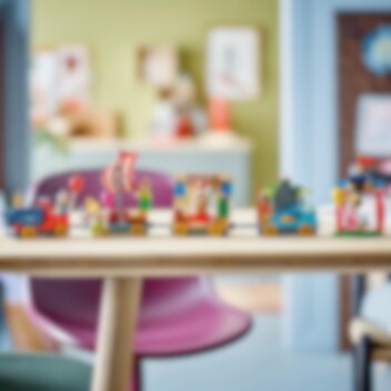 Verzaubere junge Eisenbahnfans ab 4 Jahren mit einem Bauspielzeug, das alle schwärmen lässt. Der LEGO® ǀ Disney: Disney Geburtstagszug (43212) ist ein Set aus Bahnhof, Lok, 3 Waggons und 6 LEGO Minifiguren: Micky Maus, Minnie Maus, Vaiana, Peter Pan, Tinker Bell und Woody. Die LEGO Builder App bietet dir und deinen Kindern ein intuitives Bauabenteuer. Junge Kinder können mithilfe der enthaltenen Vergrößerungs- und Drehfunktionen digitale Modellansichten näher betrachten. Kreativ, fantasievoll, entwicklungsfördernd Dieses 4+ Set bietet Spielspaß und lässt Kinder Selbstvertrauen entwickeln. Hilfreiche Starter-Bauelemente dienen deinem Kind als solides Fundament für sein Modell. In jedem Steinebeutel befindet sich auch eine Figur, damit das Spielvergnügen jederzeit beginnen kann. Das Set kann ja auch später noch fertiggebaut werden. Spaß für die ganze Familie 4+ Sets lassen Eltern und Kinder wunderbar miteinander bauen und spielen. Es macht auch nichts, wenn sich die Erwachsenen noch nicht mit LEGO Bauspielzeugen auskennen. Dann übernehmen einfach die Kinder das Ruder beim Bauen. Denn die beiliegende Bildanleitung ist auch für junge Kinder verständlich, die gerade erst lesen lernen.