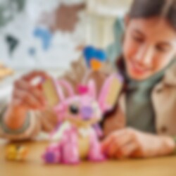 Überrasche Fans von Lilo & Stitch und Kinder ab 9 Jahren mit Angel (43257). Dieses LEGO® ǀ Disney Bau- und Spielset beinhaltet ein bewegliches baubares Modell. Die detailgetreue Figur Angel aus der Disney Serie Lilo & Stitch hat bewegliche Ohren und Antennen, die hinten an ihrem drehbaren Kopf befestigt sind. Du kannst das Modell zusätzlich mit einem Schmetterling und 3 „schwebenden Herzen“ aus LEGO Steinen verzieren. Angel ist ein tolles Geschenk für Fans der Disney Serie Lilo & Stitch sowie für Mädchen und Jungen ab 9 Jahren, die die Figur bauen und nach dem Spielen ausstellen können. Die Disney Figur Angel lässt sich mit anderen separat erhältlichen LEGO ǀ Disney Bausets kombinieren, zum Beispiel auch mit LEGO ǀ Disney Stitch, um das außerirdische „Powerpaar“ zusammen auszustellen. Jedes Kind, das Disney Filme liebt, und jeder Fan von Lilo & Stitch werden von den Details des Sets begeistert sein. Kinder dürfen sich außerdem auf ein ebenso leichtes wie intuitives Bauabenteuer mit der LEGO Builder App freuen. In der App können Kinder 3D-Ansichten der Modelle vergrößern und drehen, Sets speichern und den Baufortschritt verfolgen. Das Bauset besteht aus 784 Teilen.