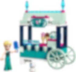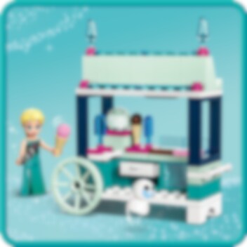 Hilf Elsa, an dem Modell aus diesem LEGO® ǀ Disney Bauset Eiswaffeln und Eis am Stiel zu servieren. Das Set basiert auf dem Disney Kinoerfolg Die Eiskönigin – Völlig unverfroren. Du kannst Elsa helfen, leckeres Eis an ihre Freunde zu verteilen. Was für ein toller Schneeglobus! Und mit den beiden Ringen kannst du deine Begeisterung für Elsa und den Mini-Schneemann zeigen. Die Verzierungen der Ringe kann man jederzeit austauschen. Ach, wo kommt denn der Mini-Schneemann plötzlich her?