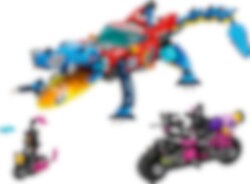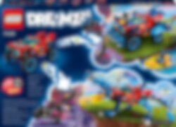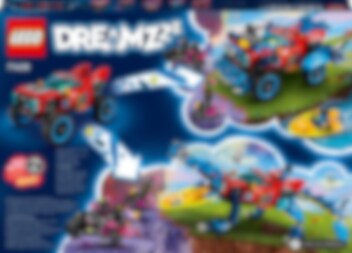 Kinder ab 8 Jahren können mit dem LEGO® DREAMZzz Krokodilauto (71458) in die Traumwelt flitzen. Das Bau- und Spielset basiert auf der TV-Serie und lässt Fans ein fantastisches Auto bauen, mit dem sie Jayden aus den Fängen des gruseligen Nachtjägers befreien können! 1 Set, 2 Baumöglichkeiten Das Spielset bietet 2 Baumöglichkeiten und Bauanleitungen in Form von Bildergeschichten. So kann dein Kind eines von zwei Abenteuern auswählen, was doppelten Spielspaß bedeutet. Dein Kind kann entweder ein Krokodilauto bauen, um die Albträume zu verscheuchen, oder einen superschnellen Geländewagen erschaffen, um die Albträume einzuholen. In der Krokodilversion verfügt das Auto über bewegliche Arme und Beine sowie über ein im Kühlergrill verstecktes Katapult, um Scheiben aus dem Krokodilmaul zu schleudern. Als Geländewagen verfügt das Fahrzeug über rollende Räder und ein abnehmbares Dach, um eine Minifigur hineinsetzen zu können. Fantastische Minifiguren Das Bau- und Spielset beinhaltet 3 Minifiguren – Cooper und Jayden sowie den Nachtjäger. Der Nachtjäger fährt ein cooles Motorrad und wird von einem bösen Handlanger begleitet.