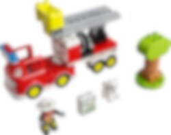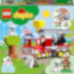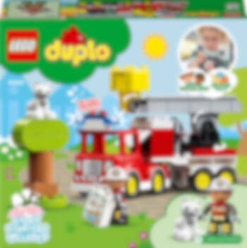 Das LEGO® DUPLO® Feuerwehrauto (10969) fasziniert Kinder ab 2 Jahren, die sich für Löschautos interessieren. Tierrettungen mit dem Feuerwehrauto Eine Katze sitzt hoch oben auf dem Baum und traut sich nicht mehr herunter! Mit blinkendem Blaulicht und schrillendem Martinshorn (Batterien liegen bei) kommt das Feuerwehrauto zu Hilfe. Dein Kind kann die Kurbel drehen, um die Leiter hochzufahren, und die Leiter dann mit dem Korb schwenken. Sollte das arme Kätzchen sich nicht von der Stelle rühren, lässt es sich vielleicht mit Leckerli runterlocken. Als letztes Mittel bleibt dann nur noch der Löschschlauch! Dieses Spielset lässt Vorschulkinder soziale, emotionale und feinmotorische Fähigkeiten entwickeln, wenn sie in die Rolle des freundlichen Feuerwehrmanns schlüpfen und das Feuerwehrauto mit den tollen Funktionen benutzen, um das niedliche Kätzchen vom Baum retten. Spielerischer Lernspaß für Kleinkinder Wenn junge Kinder mit den LEGO DUPLO Spielzeugen kreativ spielen und die Welt erkunden, können Eltern wichtige Entwicklungsschritte miterleben.