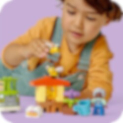 Lass die Bienen umherschwirren, um deinem Kleinkind zu erklären, wie diese Insekten leben! LEGO® DUPLO® Town Imkerei und Bienenstöcke ist ein farbenfrohes Bauset, das Vorschulkindern beibringt, was diese wichtigen Bestäuber machen und wie Honig erzeugt wird. Dein Kleinkind gießt die Blumen, damit sie wachsen. Die Bienen sammeln den Nektar und bringen ihn zum Bienenstock, wo sie Honigwaben bauen. Die Oma und ihr Enkel sammeln den Honig und bringen die Honiggläser mit dem LKW zum Markt.