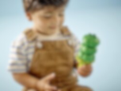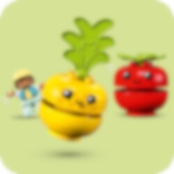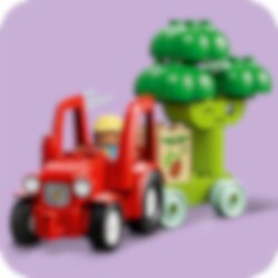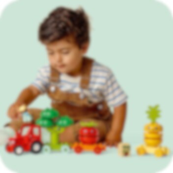 Der LEGO® DUPLO® Obst- und Gemüse-Traktor (10982) lässt Kleinkinder auf vielfältige Weise lernen. Vorschulkinder können den Landwirt auf seinem Traktor mit 3 Anhängern zur Obst- und Gemüseernte begleiten. Kinder ab 18 Monaten können mit dem Set das Stapeln üben, größere Fingerfertigkeit entwickeln und etwas darüber erfahren, wie Obst und Gemüse gedeihen. Indem sie die Bausteine stapeln, lassen sie die Pflanzen wachsen. Bunte Steine bieten jede Menge Sortierspaß. Vorschulkinder können jede Pflanze auf den farblich passenden Anhänger laden, die Farben kreativ mischen und neu kombinieren und sogar die Gesichter austauschen! Entwicklungsfördernde Spielzeuge für riesigen Lernspaß Alle LEGO DUPLO Spielzeuge werden fachkundig konzipiert, um Kleinkinder mit bunten Bausteinen, faszinierenden Figuren und vielen Details fantasievoll spielen, interessante Geschichten darstellen und erste Fähigkeiten entwickeln zu lassen. Außerdem kann man dieses Spielzeug auch mit den anderen Biobauernhof-Spielsets sowie allen anderen LEGO DUPLO Modellen kombinieren.