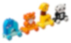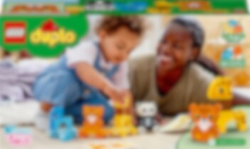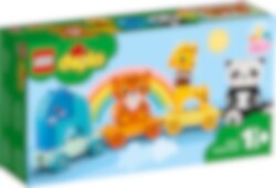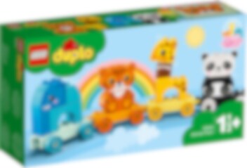 Das LEGO® DUPLO® Set Mein erster Tierzug (10955) führt Kinder spielerisch in das Tierreich ein. Spielzeug-Tierzug zum Ziehen Ein Elefant, ein Tiger, eine Giraffe und ein Panda bieten kleinen Tierfreunden jede Menge Bau- und Spielmöglichkeiten. Wenn Kleinkinder die Waggons bauen, umbauen und aufreihen und die Tiere vom Zug nehmen und stapeln, verbessern sie ihre Feinmotorik und entdecken die Magie fantasievoller Rollenspiele. Innovative Funktionen wie der Wackelhals der Giraffe verleihen diesem Lernspielzeug eine zusätzliche lustige Note. Das Set enthält Baukarten mit Bildern der Modelle (in Originalgröße), damit Kinder die Steine beim Bauen über das Bild legen können. Der Zug lässt sich jedoch auch an andere DUPLO Spielzeuge auf Rädern ankoppeln, um noch mehr Spielspaß zu vermitteln. LEGO® DUPLO® Lernspielzeuge ermöglichen Kleinkindern eine freie Selbstentfaltung und echten Lernspaß. Beim gemeinsamen Spielen lassen die Sets Eltern wichtige Entwicklungsschritte der Kinder erleben.