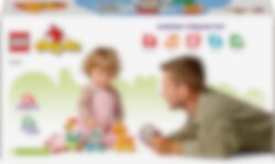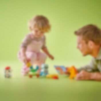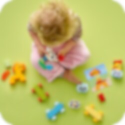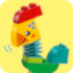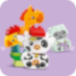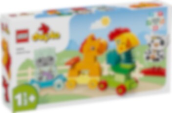 Alles einsteigen in den lustigen LEGO® DUPLO® Tierzug. Anhand der Farbe entscheiden Kleinkinder, welches Tier in welchem Waggon sitzen soll. Dein Kind kann die niedlichen Bauernhoftiere bauen und nach Herzenslust umbauen. Wenn Kleinkinder die Waggons aneinanderkoppeln und den biegsamen Hals des Hahns wackeln lassen, entwickeln sie wichtige motorische Fähigkeiten.