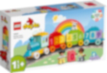 Sieh dir die farbenfrohe neue Version des beliebten LEGO® DUPLO® Zahlenzugs an! Kleinkinder können die Zahlensteine auf- und abladen, in der richtigen Reihenfolge aufstellen und zu einer Zahlenwand aufstapeln. Eine Poster-Spielmatte bietet zusätzlichen Bauspaß. Bewegliche Räder, ein aufklappbares Dach und freundliche Figuren lassen dein Kind fantasievoll spielen und wichtige Fähigkeiten entwickeln.