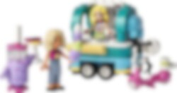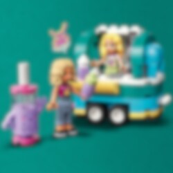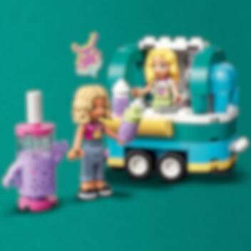 Kreative Kinder ab 6 Jahren werden das LEGO® Friends Bubble-Tea-Mobil (41733) lieben. Der Bubble-Tea-Wagen wird von einem coolen Elektroroller gezogen. Das Dach lässt sich öffnen, damit dein Kind zusammen mit den beiden Gaming-Fans Nova und Matilde tolle Bubble-Tea-Kreationen zubereiten kann. Obwohl Nova Tausende Online-Follower hat, ist sie manchmal etwas schüchtern. Deshalb ist sie unheimlich froh, dass sie mit der begeisterten Gamerin Matilde befreundet ist. Zubehör wie die 2 Bubble-Tea-Flaschen und eine Funktion zum Schütteln und Mixen der Zutaten lässt Kinder kreativ spielen. Außerdem gibt es eine kleine Kasse, einen Tisch und eine Figur mit Speisekarte. Noch mehr Bauspaß Biete deinem Kind mit der LEGO Builder App ein leichtes und intuitives Bauabenteuer. Die Funktionen lassen dein Kind 3D-Ansichten der Modelle vergrößern und drehen, Sets speichern und den Baufortschritt verfolgen. Freu dich auf die nächste Generation in Heartlake City Im LEGO Friends Universum kann dein Kind Freundschaften schließen, faszinierende neue Orte entdecken, kreativ spielen und Alltagsabenteuer darstellen.