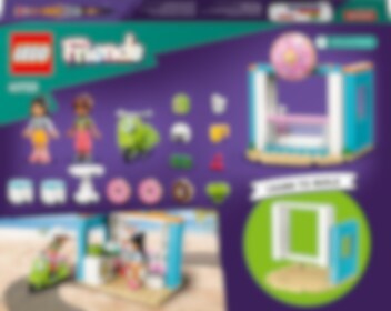 Junge Backfans ab 4 Jahren werden mit dem LEGO® Friends Donut-Laden (41723) gern eigene Geschichten darstellen. Dieses fantasievolle Bau- und Spielset bringt Kindern das Bauen bei. Die kunstbegeisterte Liann und der Kuchenfan Leo laden zu kreativen Rollenspielen ein. Mit ihrem Optimismus und ihrer Begeisterung ist Liann eine tolle Freundin für Leo, der gerade erst nach Heartlake City gezogen ist. Das Zubehör besteht aus einer Schüssel, Beeren, einer Tasse, 3 Donuts, Saft, Geld, 2 Stühlen und einem Tisch, um Kinder köstliche Snacks und Säfte zubereiten und dabei ganz spielerisch lernen zu lassen. Inspiration für neue Baumeisterinnen und Baumeister LEGO 4+ Sets bieten Kindern ein ebenso rasches wie spannendes Bauerlebnis. Dabei erweist sich auch das enthaltene Starter-Bauelement als sehr hilfreich. Auf diesem robusten Fundament können Kinder ihren Donut-Laden errichten. Lass dich und dein Kind von der LEGO Builder App auf ein intuitives Bauabenteuer mitnehmen. In der App könnt ihr 3D-Ansichten der Modelle vergrößern und drehen, Sets speichern und euren Baufortschritt verfolgen. Freu dich auf die nächste Generation in Heartlake City Im LEGO Friends Universum kann dein Kind Freundschaften schließen, faszinierende neue Orte entdecken und Alltagsabenteuer darstellen.