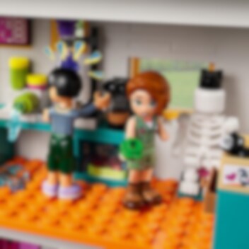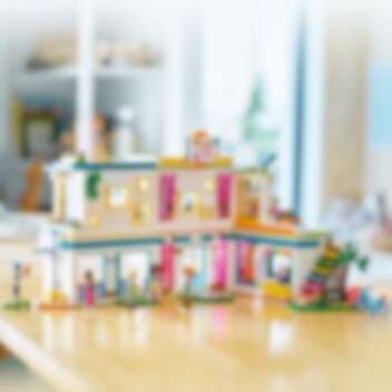 LEGO® Friends Internationale Schule (41731) ist genau das richtige Set, um Kinder ab 8 Jahren viele neue Fächer und Kulturen entdecken zu lassen. Dein Kind kann sich die Klassenzimmer ansehen, die jeweils das passende Zubehör zum dort unterrichteten Fach enthalten. Dank des modularen Aufbaus des Modells kann dein Kind die Schule nach den eigenen Interessen umgestalten. Es gibt eine Schulkantine, ein Labor, einen Eingangsbereich mit Schließfächern, einen Kunstraum, einen Medienraum und eine Toilette. Draußen findest du einen Basketballkorb, ein Skateboard und ein Fahrrad mit Helmen. Kinder können viel Neues ausprobieren und unter anderem Bunsen, den Hamster der Klasse, umsorgen, im Kunstraum kreativ werden oder draußen spielen. Fesselndes Bauerlebnis Die LEGO Builder App bietet deinem Kind ein leichtes und intuitives Bauabenteuer. Dein Kind kann 3D-Ansichten der Modelle vergrößern und drehen, Sets speichern und seinen Baufortschritt verfolgen. Eine neue Generation in Heartlake City Im LEGO Friends Universum kann dein Kind Freundschaften schließen, faszinierende neue Orte entdecken und Alltagsabenteuer erleben.