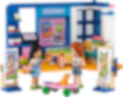 In LEGO® Friends Lianns Zimmer (41739) gibt es für kunstbegeisterte Kinder ab 6 Jahren sehr viel zu entdecken. Das Bau- und Spielset beinhaltet einen Zeichentisch, eine Fensternische und ein verstecktes Bett. Dein Kind wird gern herausfinden, wie sich die Freundschaft zwischen der tatkräftigen Liann und der unbekümmerten Autumn entwickelt. Kinder können fantasievoll spielen und zum Beispiel so tun, als würden sie ein Bild von Lianns Gecko Popcorn malen. Die für ein Künstlerstudio typischen Utensilien (Farbtuben, Paletten und Staffeleien) motivieren dein Kind zu kreativen Projekten. Donuts, Tassen, Comic-Hefte, ein Skateboard, ein Handy, ein Stift und ein Terrarium für den Gecko Popcorn laden ebenfalls zum Spielen ein. Faszinierendes Bauerlebnis Die LEGO Builder App bietet deinem Kind ein leichtes und intuitives Bauabenteuer. Die Funktionen lassen dein Kind 3D-Ansichten der Modelle vergrößern und drehen, Sets speichern und seinen Baufortschritt verfolgen. Eine neue Generation in Heartlake City Im LEGO Friends Universum kann dein Kind Freundschaften schließen, faszinierende neue Orte entdecken und Alltagsabenteuer erleben.