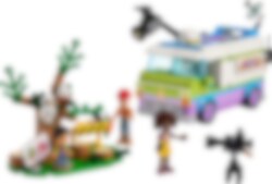 Im LEGO® Friends Nachrichtenwagen (41749) werden Kinder ab 6 Jahren, die Rollenspiele und Tiere lieben, viele Spielideen finden. Die fleißige Aliya möchte unbedingt topaktuelle Nachrichten ins Gemeinschaftszentrum übertragen. In dem Nachrichtenwagen ist alles vorhanden, was Aliya braucht, um Nachrichtenbeiträge zu filmen und zu senden. Dort befinden sich unter anderem Bildschirme, Lampen, Mikrofone und ein Notizheft mit Stift. Dein Kind kann darüber berichten, wie ein Holzfäller anrückt, um einen Baum zu fällen. Wenn die Geschichte dann im Kasten ist, kann dein Kind Aliya in den Wagen steigen lassen, um den Beitrag im eingebauten Studio zu bearbeiten und zu senden. Das Set beinhaltet 2 Spielfiguren, 1 Mikro-Spielfigur und jede Menge Zubehör. Noch mehr Bauspaß Die LEGO Builder App bietet Kindern ein leichtes und intuitives Bauabenteuer. Die Funktionen lassen dein Kind 3D-Ansichten der Modelle vergrößern und drehen, Sets speichern und seinen Baufortschritt verfolgen. Die nächste Generation von Heartlake City Lass dein Kind die neue LEGO Friends Welt mit ihren unterschiedlichen Figuren erkunden und dabei seine eigenen Interessen entdecken.
