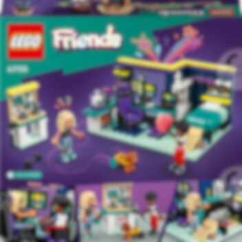 LEGO® Friends Novas Zimmer (41755) ist ein tolles Bau- und Spielset, in dem Kinder ab 6 Jahren vieles entdecken können. Zac dachte eigentlich, er hätte nicht viel mit Nova gemeinsam. Doch dann fand er heraus, dass sie Videospiele liebt – genau wie er! Jetzt spielen die beiden häufig miteinander und sind mittlerweile fast schon unzertrennlich. Dein Kind wird es lieben, die Funktionen in diesem Kinderzimmer zu entdecken, zum Beispiel den Gaming-PC mit Tastatur, Neon-Lüftern und Mikrofon sowie den Gaming-Stuhl. Dein Kind kann den beiden Charakteren auch helfen, den Rettungshund Pickle zu versorgen. Auf der Werkbank kann Nova die Räder von Pickle reparieren. Und dank der Rampe schafft es der Hund aufs Bett hinauf. Gern wird dein Kind auch all die anderen Details wie das versteckte Poster entdecken, die Novas andere Interessen preisgeben. Inspiration für junge Baumeisterinnen und Baumeister Die LEGO Builder App bietet Kindern ein leichtes und intuitives Bauabenteuer. Die Funktionen lassen dein Kind 3D-Ansichten der Modelle vergrößern und drehen, Sets speichern und seinen Baufortschritt verfolgen. Heartlake City wächst Im LEGO Friends Universum kann dein Kind Freundschaften schließen, faszinierende neue Orte entdecken und Alltagsabenteuer erleben.