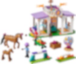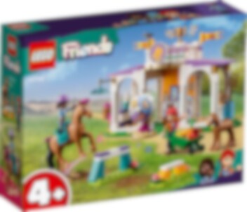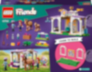 Kinder ab 4 Jahren, die Pferde lieben und sich gern um Tiere kümmern, können mit der LEGO® Friends Reitschule (41746) viele fantasievolle Geschichten darstellen. Das Bau- und Spielset mit Stall, den Spielfiguren Aliya und Mia, 2 Pferden und Zubehör bringt Kindern das Bauen bei und lässt sie kreativ spielen. Aliya und Mia, die Mutter ihrer Freundin, verbindet die Liebe zu Pferden. Dein Kind kann an diesem Beispiel erleben, wie sich aus einem gemeinsamen Interesse eine besondere Beziehung zwischen zwei Menschen entwickelt. Inspiration für neue Baumeisterinnen und Baumeister LEGO 4+ Sets bieten Kindern ein ebenso rasches wie faszinierendes Bauerlebnis. Dabei erweist sich auch das enthaltene Starter-Bauelement als sehr hilfreich. Auf diesem robusten Fundament können Kinder die Szenen aufbauen. Lass dich und dein Kind von der LEGO Builder App auf ein intuitives Bauabenteuer mitnehmen. In der App könnt ihr 3D-Ansichten der Modelle vergrößern und drehen, Sets speichern und euren Baufortschritt verfolgen. Willkommen bei der neuen Generation von Heartlake City Im LEGO Friends Universum kann dein Kind Freundschaften schließen, faszinierende neue Orte entdecken und Alltagsabenteuer erleben.