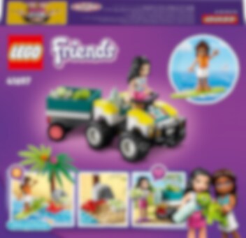 Der LEGO® Friends Schildkröten-Rettungswagen lässt Kinder spannende Rettungsmissionen darstellen. Überrasche kleine Heldinnen und Helden mit einem unerwarteten Spielzeug. Dann können sie der LEGO Friends Heldin Emma helfen, die Baby-Schildkröte vor der Krabbe zu retten. Quad für Rettungseinsätze Die hochwertigen und robusten LEGO Steine lassen sich zu einem fahrbaren Quad mit abkoppelbarem Anhänger zusammenstecken. Mit dem coolen Surfbrett kann man spannende Geschichten darstellen. Du suchst ein Spielzeug zum Sammeln, das Kinder auch unterwegs beschäftigt? Das kompakte Spielzeug-Quad passt in eine Tasche, damit Kinder jederzeit und überall damit spielen können. Gelebte Tierliebe Junge Tierfreunde werden dieses LEGO Friends Spielzeug lieben. Das Set beinhaltet 3 Tierfiguren und ist ein tolles Geburtstagsgeschenk für Kinder, die beim Spielen gerne ihre fürsorgliche Seite zeigen. Stell Jungen und Mädchen die beliebten Heartlake City Spielzeuge vor, die Kinder ihre Interessen entdecken lassen – natürlich in Begleitung ihrer besten Freunde.