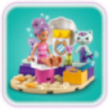 LEGO® Gabbys und Meerkätzchens Schiff und Spa (10786) für Kinder ab 4 Jahren dreht sich darum, mit Freunden Spaß zu haben, toll auszusehen und sich verwöhnen zu lassen! Fans der DreamWorks Zeichentrickserie Gabbys Puppenhaus werden dieses glamouröse Spielset lieben. Bootsausflug zum Luxus-Spa Dieses facettenreiche Spielset schickt Kinder, die Spielzeugboote, schickes Umstyling und kreative Spielerlebnisse lieben, auf unzählige fantasievolle Katzenabenteuer. Das Set beinhaltet die Spielfigur Gabby, die Figur Meerkätzchen, ein baubares Boot und einen Schönheitssalon sowie jede Menge Zubehör, beispielsweise eine Sonnenbrille, Sterne, eine Schwimmweste, einen Spiegel, eine Bürste, Haarpflegeprodukte und eine zusätzliche Perücke für Gabby. Eine farbenfrohe Bildergeschichte dient als Bauanleitung. Und in der LEGO Builder App findest du intuitive Funktionen zum Vergrößern und Drehen digitaler Modellansichten. Außerdem bietet das Starter-Bauelement für das Boot sofortigen Bauspaß. Spaß für die ganze Familie 4+ Sets sind perfekt, um Erwachsenen und Kindern ein gemeinsames Spielerlebnis zu bieten.