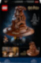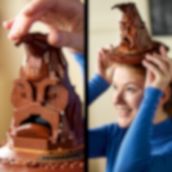 Der Sprechende Hut aus LEGO® Steinen steckt voller Überraschungen und spiegelt die Magie von Schloss Hogwarts und der Zauberwelt perfekt wider! Tippe oben auf den Hut oder setz ihn dir auf, um ihn sprechen zu lassen. Freu dich auf die Zufallswiedergabe von 31 Klangkombinationen! Wird er Haus Gryffindor, Slytherin, Hufflepuff oder Ravenclaw für dich aussuchen? Der Hut steht auf einem Ständer. Und die Minifigur Harry Potter vervollständigt diesen verspielten Hingucker.