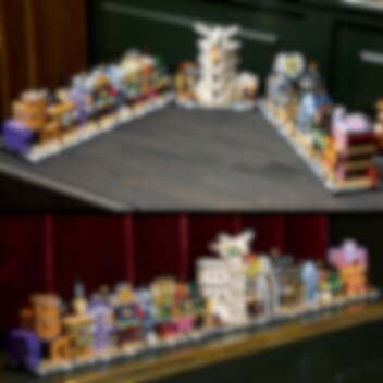 Dieses spektakuläre Modell der Winkelgasse im Mikromaßstab lässt dich zu einer ebenso kreativen wie magischen Reise aufbrechen. Bilde Weasleys Zauberhafte Zauberscherze, Gringotts Zaubererbank, Zum Tropfenden Kessel und weitere Läden nach. Klapp das Modell zu einer einzigen langen Häuserzeile aus. 12 Harry Potter™ Charaktere im Mikromaßstab und der Fahrende Ritter vollenden den Hingucker.