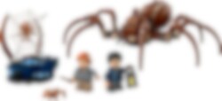 LEGO® Harry Potter Aragog im Verbotenen Wald (76434) beinhaltet die Figur einer monströsen Spinne, damit junge Zauberer, Hexen oder Muggel magische Abenteuer darstellen können. Das Spielset ist ein zauberhaftes Geschenk für Jungen, Mädchen und alle Harry Potter Fans ab 7 Jahren. Der bisher größte und authentischste Aragog aus LEGO Steinen hat bewegliche Beine, Giftklauen und Pedipalpen. Auch die Minifiguren Harry Potter und Ron Weasley (beide wahlweise mit fröhlichem oder ängstlichem Gesicht) mit ihren Zauberstäben und einer Laterne laden zum Spielen ein. Darüber hinaus beinhaltet das Set für weitere zauberhafte Spielmöglichkeiten eine kleine baubare Kulisse aus dem Verbotenen Wald, 2 Babyspinnen und ein Spinnennetz. Biete Kindern einnoch faszinierenderes kreatives Erlebnis mit der LEGO® Builder App. In der App können sie digitale 3D-Ansichten der Modelle vergrößern und drehen, ihren Baufortschritt verfolgen und Sets speichern. Dieses Spielset zum Sammeln gehört zu einer umfassende n Serie von separat erhältlichen LEGO Harry Potter Sets, die den Fans unzählige Möglichkeiten bieten, eigene magische Geschichten darzustellen.