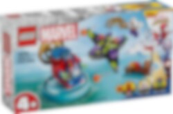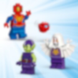 Green Goblin hat Spideys Roboterfreund Trace-E entführt! Jetzt flüchtet er auf seinem Gleiter. Doch Ghost-Spider eilt dem Bösewicht mit einem großen goldenen Netz hinterher, um ihn einzufangen. Spidey steigt in seinen Luftkissenkreisel und nimmt auf dem Wasser die Verfolgung auf. Werden die Helden Green Goblin schnappen und Trace-E retten? Oder müssen sie den Kürbisprojektilen des Bösewichts ausweichen? Spidey vs. Green Goblin verspricht Kindern ab 4 Jahren großen Actionspaß.