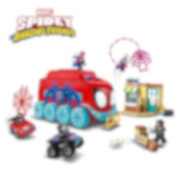 Klassische Figuren und Fahrzeuge machen LEGO® Marvel Spideys Team-Truck (10791) zur perfekten Belohnung für Kinder ab 4 Jahren. Fahrzeuge für Superhelden Das Set beinhaltet 5 Minifiguren – Spidey, Ghost-Spider, Miles Morales, Black Panther und Rhino – sowie ein baubares mobiles Hauptquartier für Spidey und sein Team. Das Cockpit des Team-Trucks lässt sich öffnen, und durch die Hecktür können der Roadster und das Quad ein- und ausfahren. Rhino ist mit einem Eierkatapult-Blaster ausgerüstet und hat es auf den Lebensmittelladen abgesehen, denn dort gibt es alles, was man für eine wilde Essenschlacht braucht. Auch Netze und Stadtmöbel laden zum Spielen ein. Ein Fahrwerk aus 2 Steinen und eine Bildanleitung lassen Kinder den Truck selbstbewusst und eigenständig zusammensetzen. Und für zusätzlichen digitalen Bauspaß beinhaltet die LEGO Builder App Vergrößerungs- und Drehfunktionen, um Kinder beim Bauen eine virtuelle Modellansicht näher betrachten zu lassen. Bauspaß für die ganze Familie 4+ Sets sind die perfekten Spielzeuge, um Eltern und Kindern miteinander bauen und spielen zu lassen, ganz gleich, ob es sich um erfahrene LEGO Fans handelt oder die Familie ihre ersten Erfahrungen mit LEGO Steinen macht.
