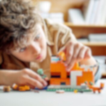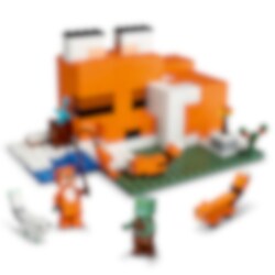 Verschiedene coole Charaktere, authentischen Zubehörelemente und unzählige Spielmöglichkeiten machen das LEGO® Minecraft® Set „Die Fuchs-Lodge“ zu einem perfekten Geschenk für Kinder ab 8 Jahren. An der Fuchs-Lodge ist immer viel los Kinder benutzen ihre Minecraft Fähigkeiten, um ein Haus zu bauen, das wie ein schlafender Fuchs aussieht. Die offene Rückseite und das abnehmbare Dach des Bauwerks lassen Kinder die Möbel umstellen und fantasievolle Rollenspiele darstellen. Draußen kann man einen Baby-Fuchs, einen erwachsenen Fuchs und einen Polarfuchs mit Beeren füttern. Aber Vorsicht: Der Ertrunkene, ein beliebter Zombie-Charakter aus dem Videospiel, treibt hier sein Unwesen. Nachdem dein Kind den Zombie mit dem Schwert verscheucht hat, kann es sich etwas Leckeres angeln.