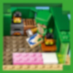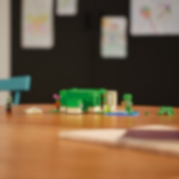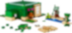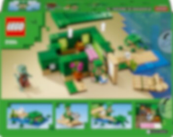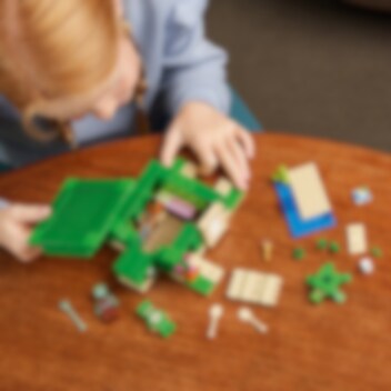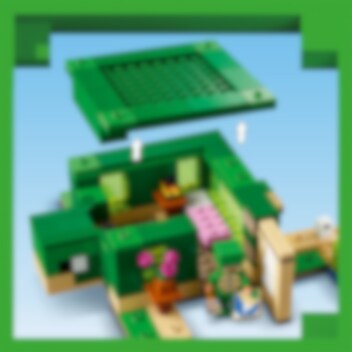 Das Modell dieses Hauses besitzt die Form einer Minecraft® Schildkröte. Drinnen und draußen laden die Tiere zu jeder Menge Spielspaß und Minecraft-Action ein. LEGO® Minecraft Das Schildkrötenstrandhaus (21254) beinhaltet 3 legendäre Charaktere sowie ein cooles Bauwerk zum Zusammenfügen. Dieses Set ist eine tolle Geschenkidee für Kinder und Minecraft-Spieler ab 8 Jahren. Dein Kind kann ein Minecraft-Haus in Form einer Schildkröte und mit Fenstern, Laternen, einer Tür, einem Bett, einem Tisch, einer Werkbank und einem Ofen bauen. Das abnehmbare Dach gewährt leichten Zugang zum Innenleben. Draußen befindet sich ein Strandabschnitt mit Zuckerrohr, Schildkröteneiern und einem Bambusfloß mit Paddeln. Vertraute Minecraft-Figuren und Kreaturen sind ebenfalls enthalten: ein Schildkrötenkrieger mit Schildkröten-Skin und Helm, ein Ertrunkener mit Dreizack, eine Schildkröte, die an Seetang knabbert, sowie 3 Babyschildkröten. Auch ein Fernglas und eine Karte sind in diesem Spielset enthalten. Kinder, die actionreiche Videospiele, kreative Modelle und Tiere lieben, werden von diesem vielseitigen Spielzeug begeistert sein. Für ein zusätzliches digitales Bauerlebnis enthält die LEGO Builder App Funktionen, um 3D-Ansichten der Modelle zu vergrößern und zu drehen und den Baufortschritt zu verfolgen.