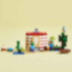 Tief im Dschungel stößt du auf dieses tolle Haus in Form eines TNT-Blocks. Dort kannst du dich ausruhen, angeln gehen und mit dem freundlichen Papagei spielen. Vorsicht! Ein Creeper™ und ein Zombie lauern in der Nähe! Löse eine Explosion aus, die das ganze Gebäude einstürzen lässt. Wenn sich der Staub gelegt hat, baust du das Haus wieder auf, um für dein nächstes Abenteuer bereit zu sein.