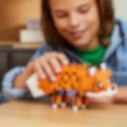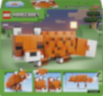 Bauen Sie einen beeindruckenden Fuchs aus Minecraft, den Sie ausstellen können! Der Fuchs (21588) ist eine große, detailreiche Figur mit beweglichen Beinen, einem drehbaren Hals und einem Kopf, der den Fuchs mit offenen oder geschlossenen Augen zeigen kann. Stellen Sie ihn stehend und wach, sitzend mit geneigtem Kopf oder liegend und schlafend dar. 497 Teile für Minecraft-Fans und Baumeister ab 10 Jahren.