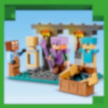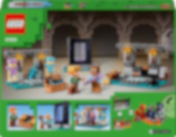 Minecraft® Spieler ab 7 Jahren werden begeistert und kreativ mit den Minecraft-Waffen und Funktionen des Sets Die Waffenkammer (21252) spielen. Dieses LEGO® Minecraft Bauset ist eine tolle Geschenkidee für Kinder und dient Gamern als Portal zu kreativen Minecraft-Abenteuern. Dieses Bauspielzeug zum Videospiel für Kinder beinhaltet 2 vertraute Figuren: die Minecraft-Actionheldin Alex mit Schild und Diamantschwert sowie den fleißigen Waffenschmied. Dein Kind kann 3 Bereiche erkunden: Im Arbeitsbereich befinden sich ein Amboss, ein Ofen, ein Schleifstein und ein Kessel voll Lava. Im Raum mit den ausgestellten Rüstungen steht auch eine Truhe, die eine goldene Axt, einen verzauberten Dreizack, ein Netherit-Schwert, einen Schild sowie weitere Minecraft-Ressourcen enthält. Und durch die Schwingtür des Netherportals gelangen die Spieler zu ihrem nächsten Abenteuer. Dieses Minecraft-Abenteuerspielzeug ist ein Erweiterungsset für Rollenspiele und lässt sich leicht mit anderen separat erhältlichen LEGO Minecraft Sets kombinieren, vor allem mit Hinterhalt am Netherportal (21255).