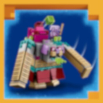 Der Verschlinger aus Minecraft Legends® macht Randale! Kotzesalven schießen aus seinem Maul, aus seinem Rucksack werden Schleimraketen abgefeuert und seine gewaltigen Arme zerschmettern alles, was ihm in die Quere kommt. Wer kann den scheußlichen Verschlinger aufhalten? Der Ranger-Held kommt auf dem Großschnabel angeritten. Mit wehender Flagge und einem Diamantschwert an der Seite spielt er auf der Laute, um ein Skelett und einen Bruchsteingolem zusammenzuscharen. Der Showdown kann beginnen!